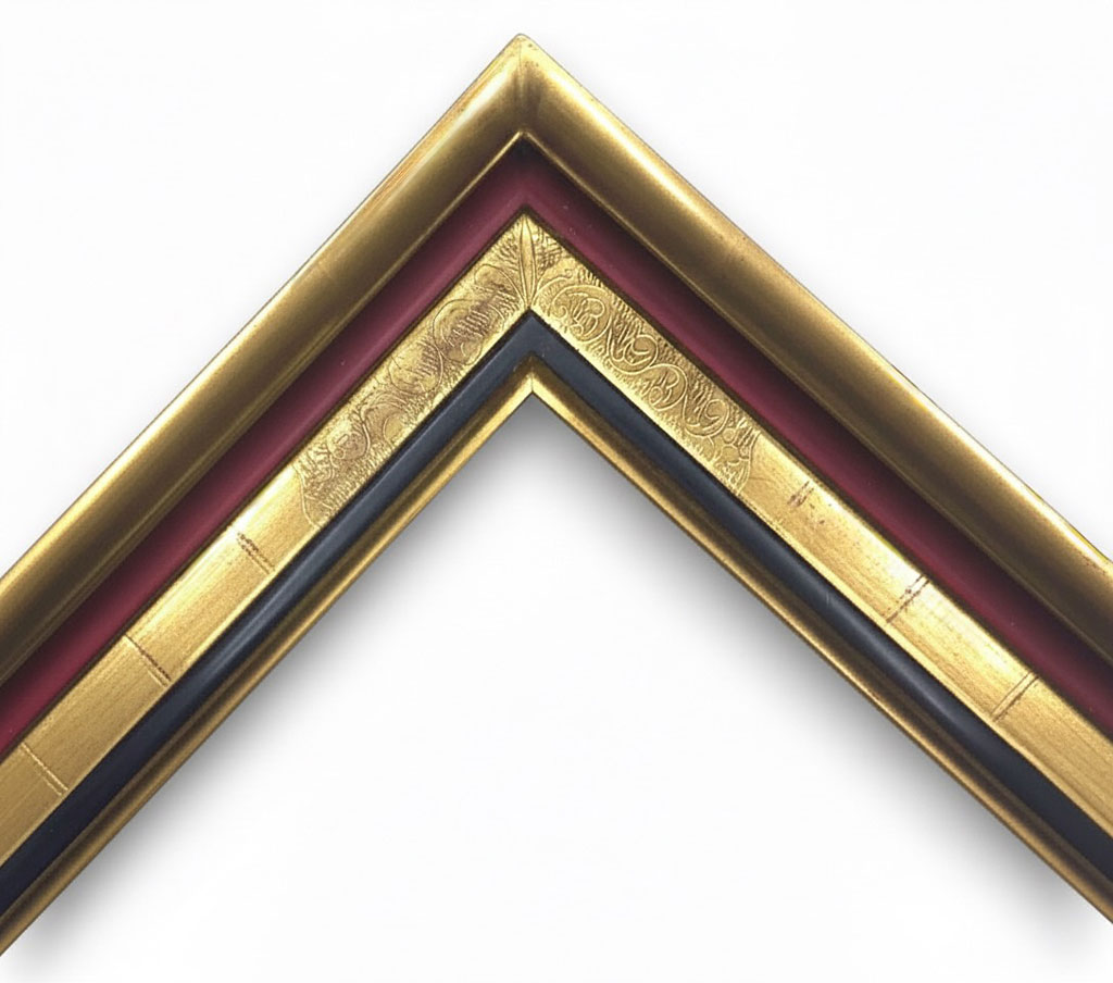 Angles gravés or fin rouge noir