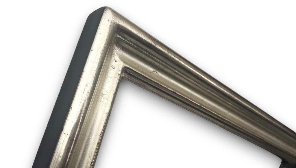 Or blanc usé sur assiette noire usée dos noir